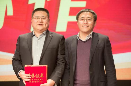 公司常务副总经理聂嘉宏为市场营销分公司王明才颁发2016年度销售状元奖